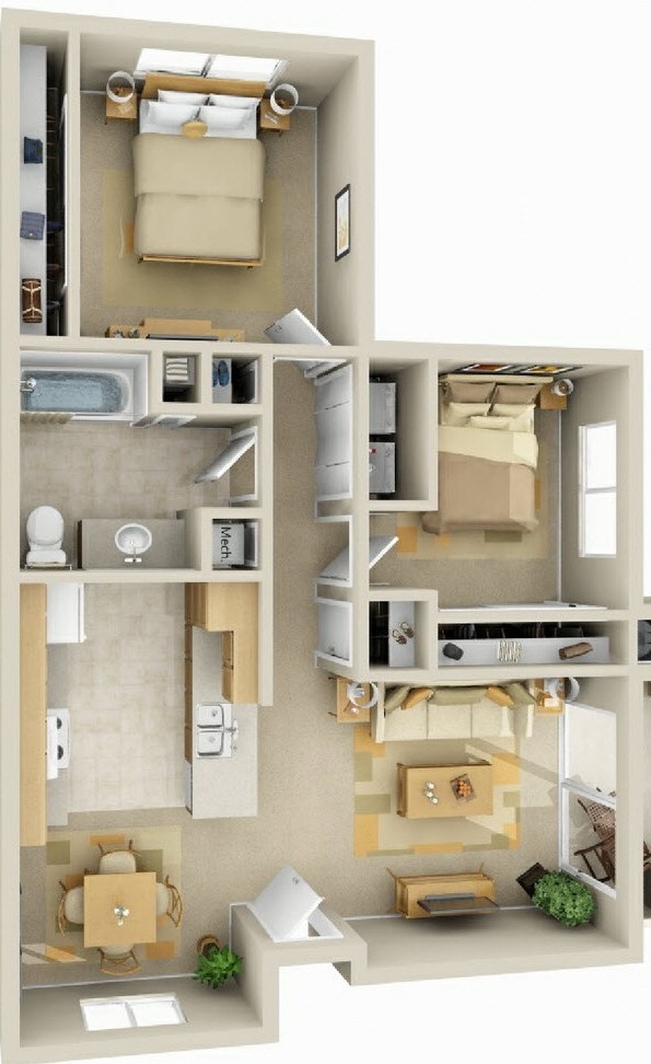 2 Bedroom / 1 Bath -- 848 sq. ft. -- $1,900/month with $700 Security Deposit